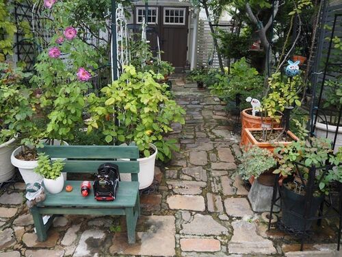 こもれじゃなくって「コボレ」 庭から通りを見たところ すべてコボレ日 バラ 二番花のシャリマー 開花が遅かったのでこんなに暑いときに咲くなんてどうかと思うわ( 一一) アイスバーグ 差し色で 斑入り葉ホトトギス コボレ日 家に入ったらるんこが小さなひな…